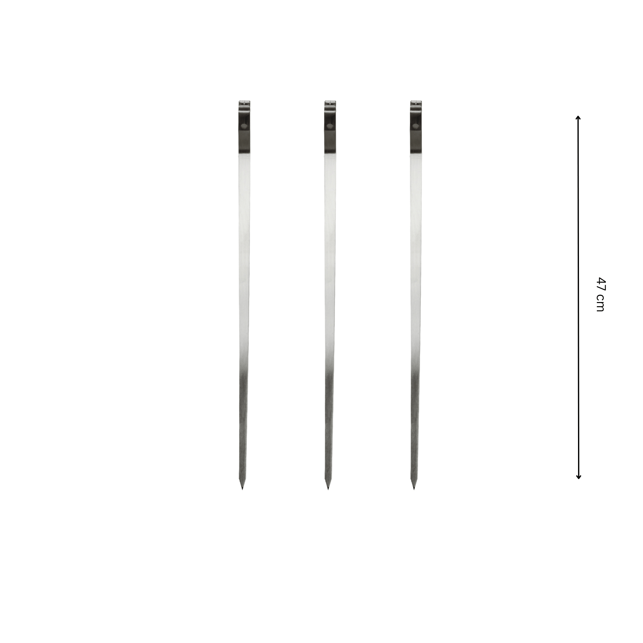 Grillstænger lavet af tykt rustfrit stål.  3 stk i sættet.